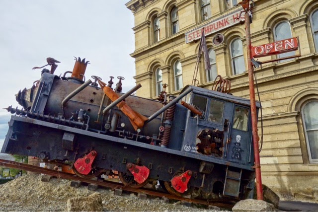 We had never heard of 'steampunk' until we visited the Steampunk HQ in Oamaru. A quirky collection of customised steam driven machines from the era of Victorian England created into a version of what the Victorians might have thought the future looked like. Quite bizarre.